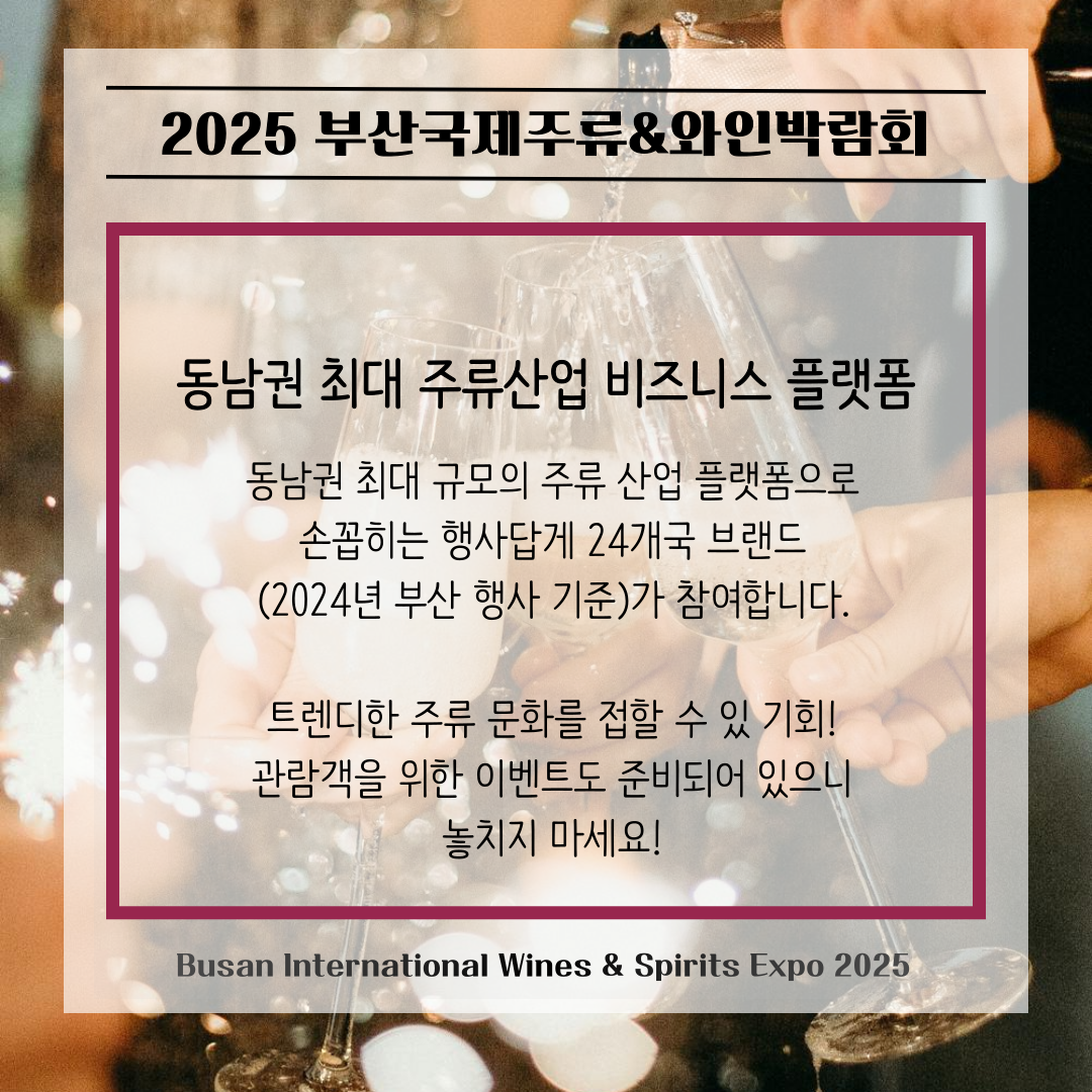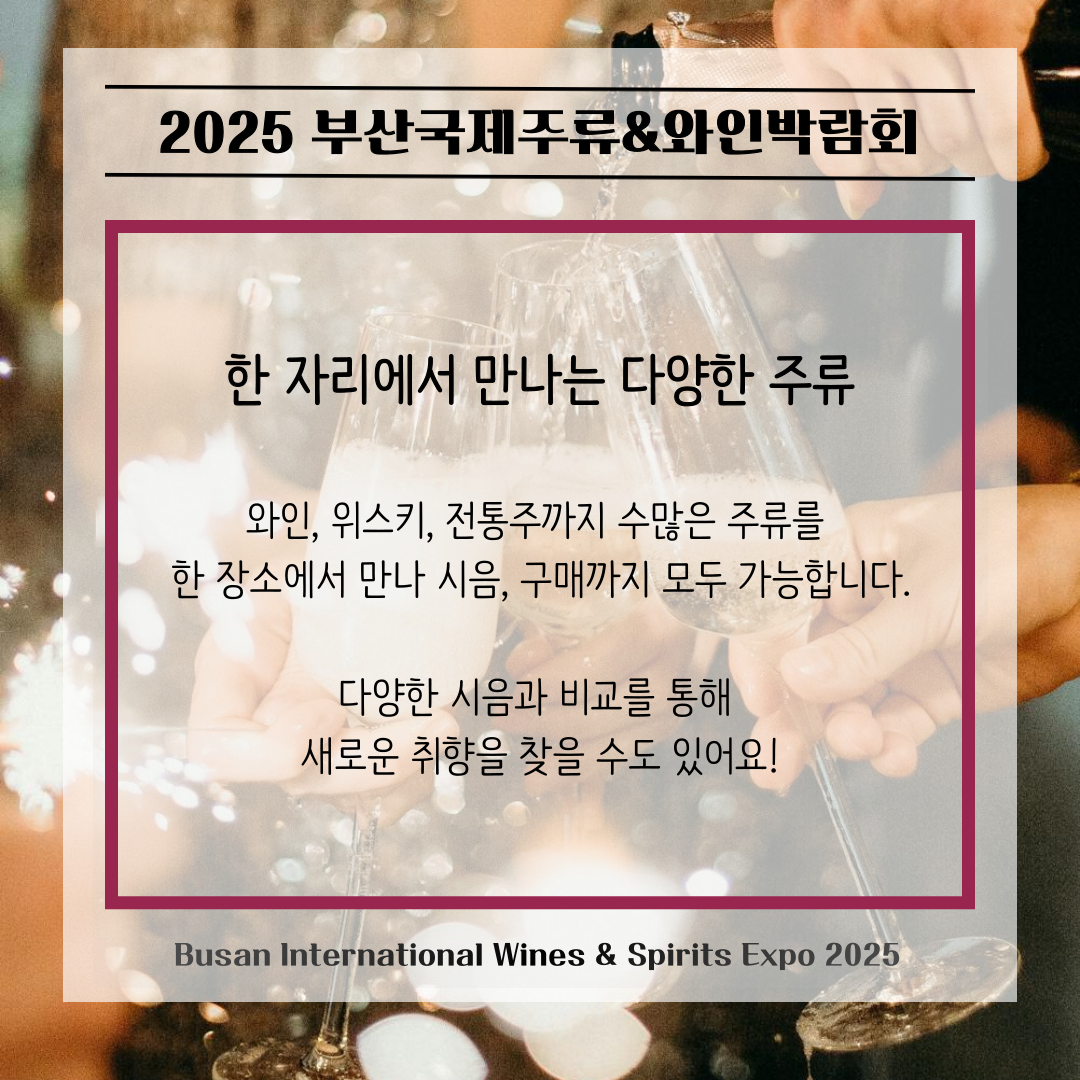 올해 12월 19~21일 3일간 부산 벡스코에서 '2025 부산국제주류&와인박람회'가 개최됩니다!