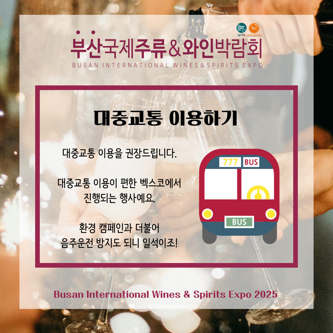 박람회에서 시음까지 즐기려면 특히나 음주운전 방지를 위해서라도 대중교통을 이용하는 것이 몸도 마음도 편하겠죠!