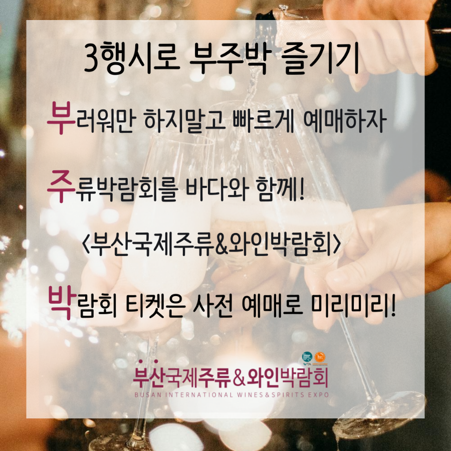 사전 예매 안내를 다시 정리하면서 '부주박'으로도 불리는 부산국제주류&와인박람회의 기대 포인트를 몇 가지 같이 알려드리려고 해요!