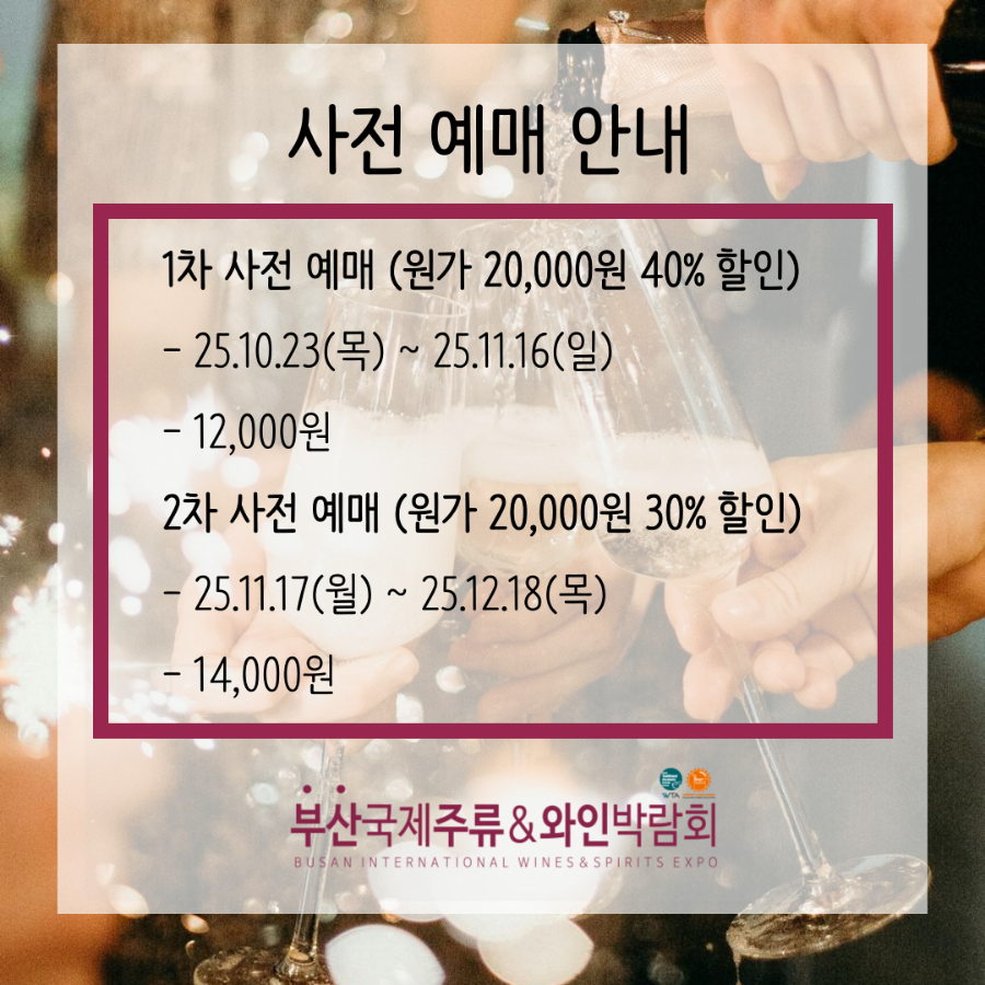 포스팅 일자 기준 (25.11.16)으로 오늘은 2025 부산국제주류&와인박람회의 1차 사전예매 마지막날입니다!